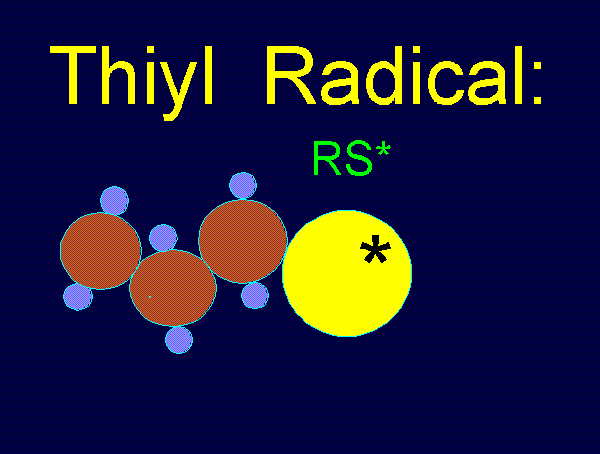 to produce the relatively stable thiyl radical (RS*).